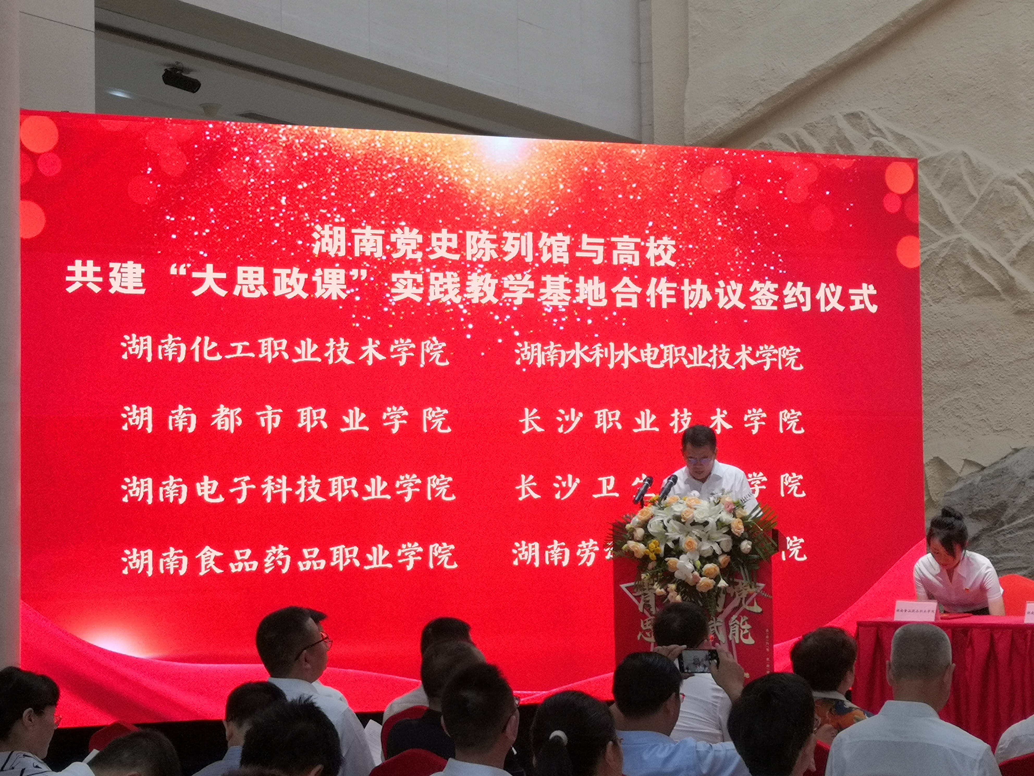 6月30日,由省委党史研究院、省委教育工委、省教育厅主办的“青春向党 思政赋能”湖南省党史陈列馆与高校共建“大思政课”实践教学基地启动仪式在湖南省党史陈列馆一楼大厅举行,长株潭43所高校马院参加了共建“大思政课”实践教学基地启动仪式。