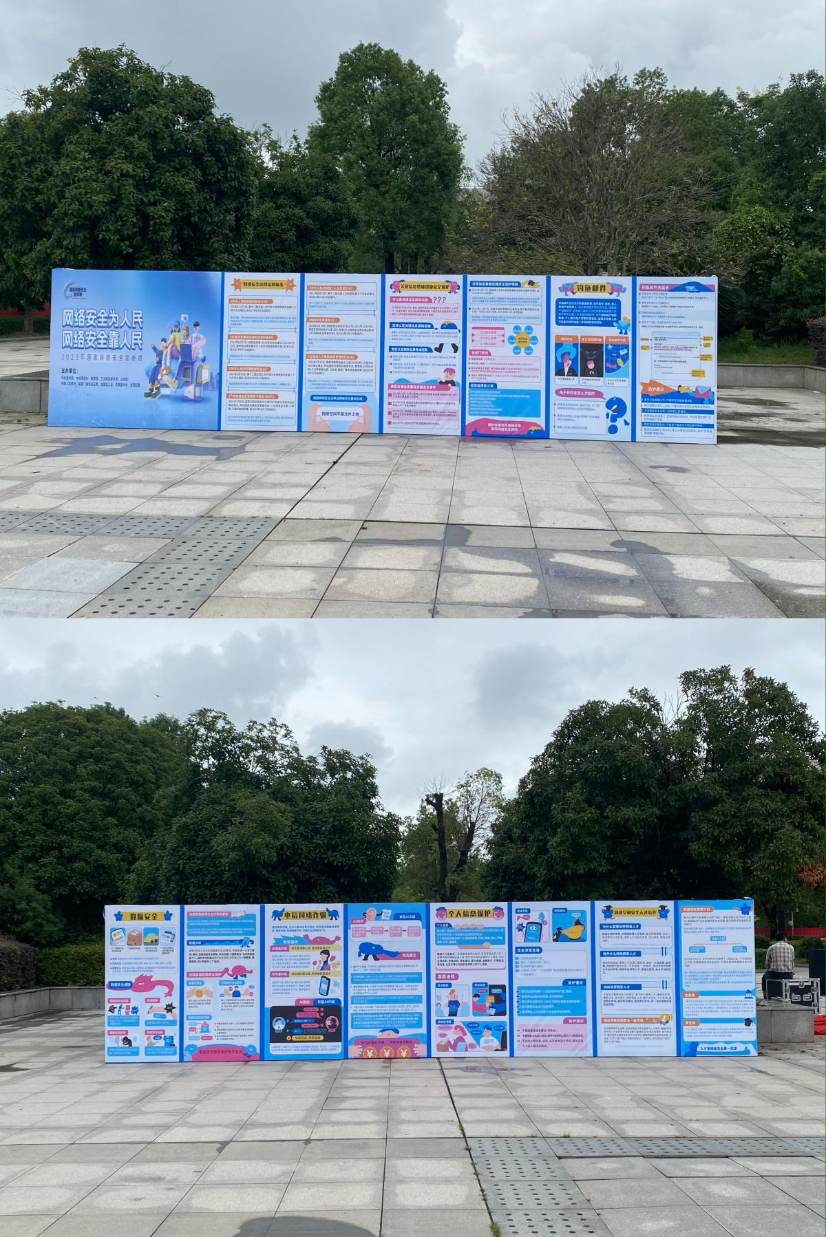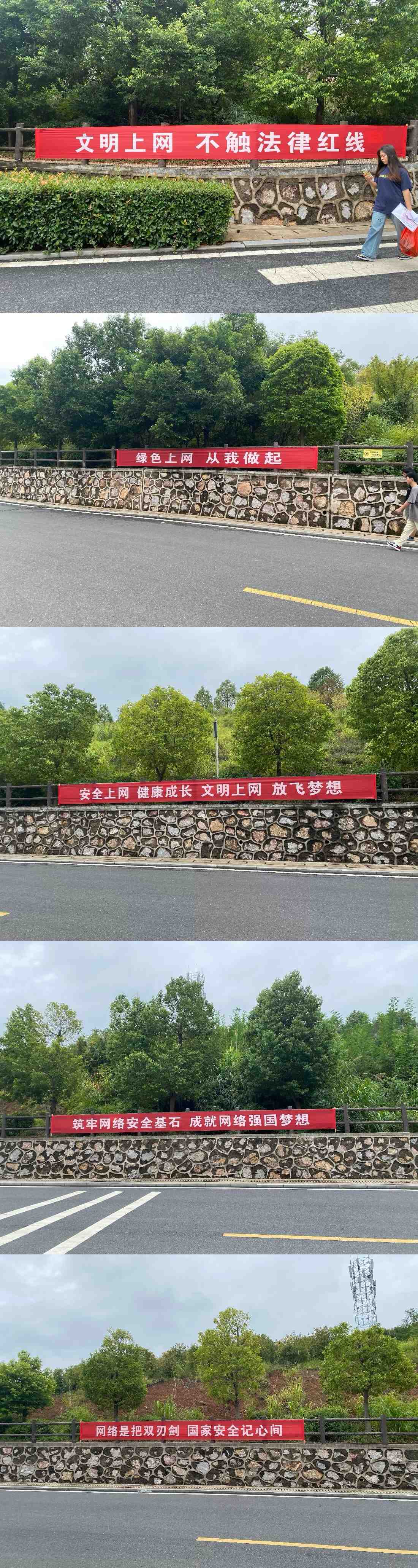 我校通过悬挂各类宣传标语,设置网络安全知识展板等形式,向广大师生普及网络安全案例、网络安全常识等内容,引导学生树立文明上网理念,了解网络安全知识,增强网络安全防范意识和自我?;つ芰Γ⑶一旖】滴拿鞯男T巴缁肪?,形成人人知晓、人人参与的良好氛围。