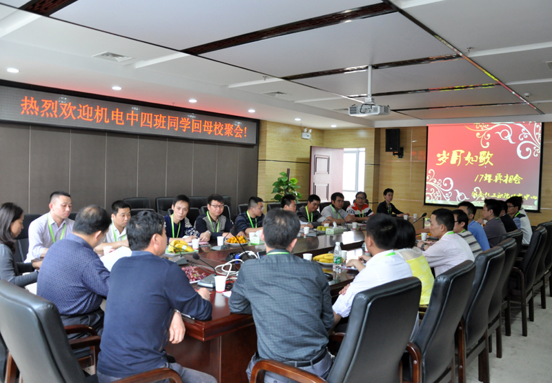 捐赠仪式后,机电中四班校友参观了学院新校区图书馆、校史馆和校园。之后,在办公楼三楼会议室举行了座谈会。学院院长刘望、副院长刘毅等参加座谈会并发表讲话。