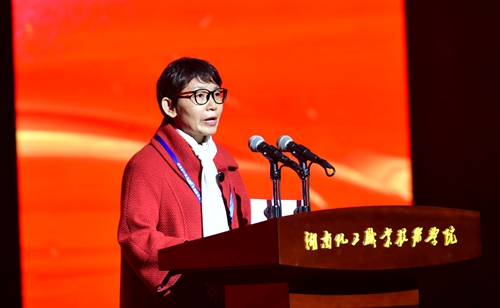 湖南省教育厅副厅长应若平在讲话中指出,湖南化工职业技术学院是一所在全国、全省化工行业享有盛誉的高职院校。办学六十年来,累计为国家培养了八万多名优秀人才,为湖南经济社会发展做出了突出的贡献。六十载弦歌不辍,一甲子春华秋实。湖南化院人用智慧和汗水谱写了职业教育的壮丽篇章!学院的发展变化,是省市各级领导大力支持和殷切关怀的结果,是学院历届领导班子励精图治、开拓创新的结果,是全体教职员工辛勤耕耘、默默奉献的结果,也是广大校友心系母校、支持母校的结果。她代表省委教育工委、省教育厅向长期支持和关心湖南化工职院建设发展的省市各级领导表示真挚感谢!向湖南化工职院全体师生员工、历届领导班子成员、离退休老同志和校友致以崇高的敬意和亲切的问候!应若平衷心希望化工职院在今后的建设发展中,以建校六十周年为新的起点,加快建设好国内一流、国际有影响的开放、和谐、美丽、幸福新化院,在服务湖南高质量发展中争取更大作为。同时,省教育厅将大力支持学院的建设和发展。她相信,在省市各级领导的关怀下,在社会各界的支持下,在全体师生员工的共同努力下,化工职院的明天一定会更美好!