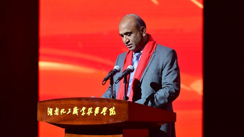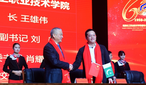 巴基斯坦联合通讯社中国负责人穆罕默德?阿斯加尔先生代表国际合作单位致辞。他表示,前期的相关合作已经让他们看到了湖南化工职业技术学院全体教职工为推进中巴职业教育合作与交流付出的巨大努力,为推动中巴两国的友谊做出的有效贡献!湖南化工职业技术学院国际化的教学理念、精良的师资队伍、一流的实训设备、优美的校园环境,定将吸引更多的巴基斯坦学生来校学习。他代表巴基斯坦联合通讯社全体工作人员祝愿湖南化工职业技术学院繁荣似锦,再创佳绩。