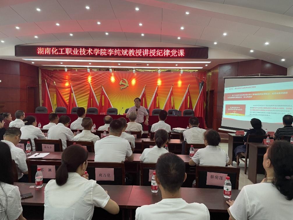 为了深入学习领会习近平总书记关于全面加强党的纪律建设的重要论述和重要讲话精神,充分发挥“全国党建工作样板党支部”的示范引领和辐射带动作用。7月5日上午,智能控制工程学院教工党支部邀请株洲市委宣讲团成员李纯斌教授,为金山街道办事处党建联盟社区学院举办一场以“坚定不移把党的伟大自我革命进行到底”为主题的党课。