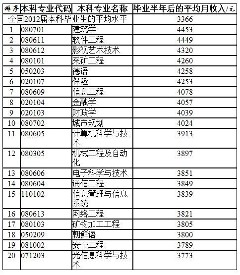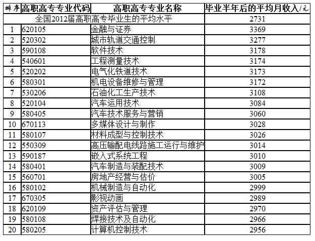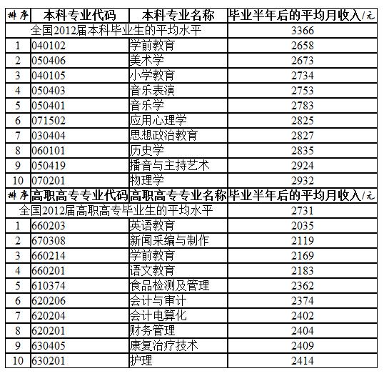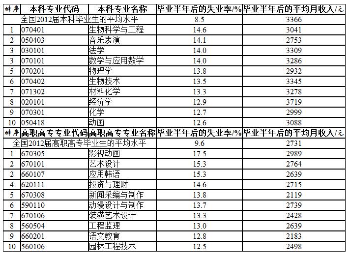 旨在从各专业毕业生的就业前景出发,从毕业生毕业半年以后的就业率、平均月收入较高、平均月收入增长较快以及毕业3年之后收入较高、职业转换率最高和最低的本科和高职专业。