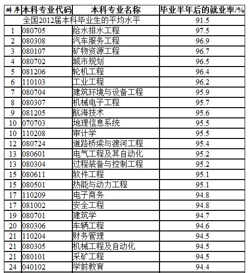 针对专业排行,需要注意的是:(1) 就业率体现的是专业的整体就业情况。就业率高并不一定代表容易就业—— 对于招生量大的专业而言,即便其就业率高,但每一个未就业的百分点仍代表着大量“毕业即失业”的毕业生。(2) 月收入增长快和毕业3年后收入较高,仅体现的是各专业毕业生的中期职业前景,参考这两项就业收入数据可以为实现个人的中长期发展提供参考。但不能否认的是,随着工作技能和经验的积累,专业的优势会逐渐被淡化,最终事业发展的成功与否,还要取决于个人的工作能力以及在工作岗位上所作出的贡献。