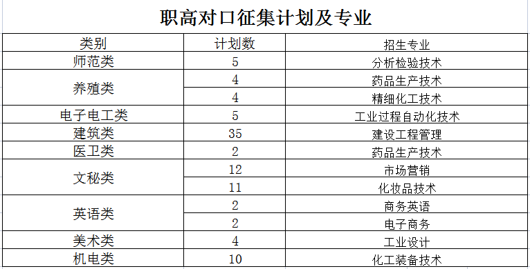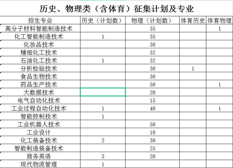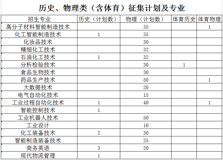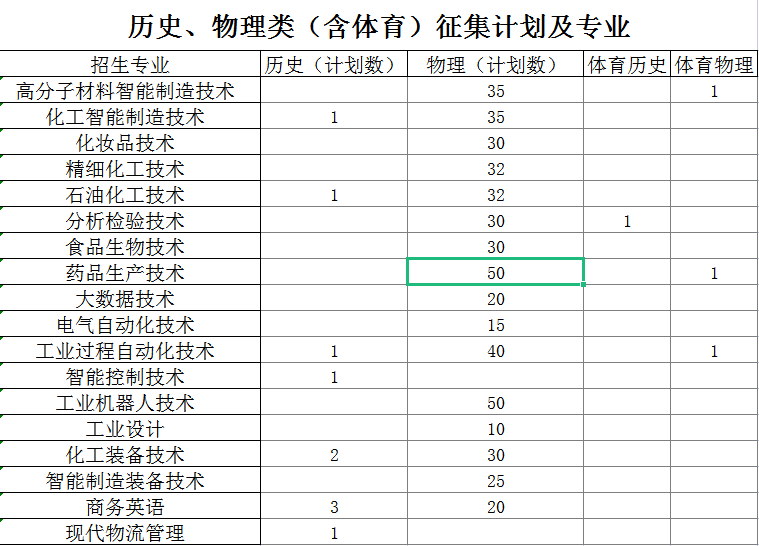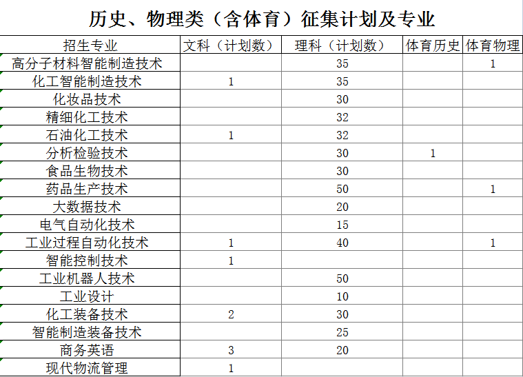 湖南化工职业技术学院2021年征集计划及专业