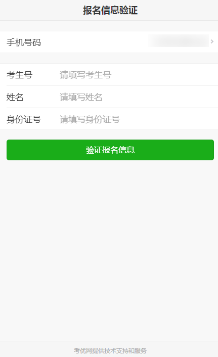 考生填写自己的考生号、姓名、身份证号等信息,系统验证考生信息是否正确,是否报考我校。