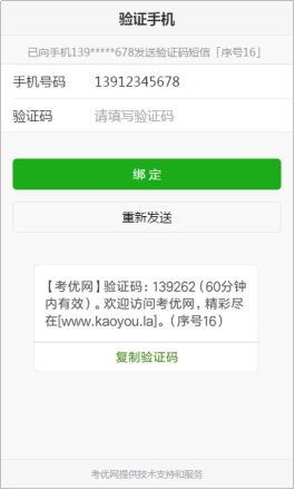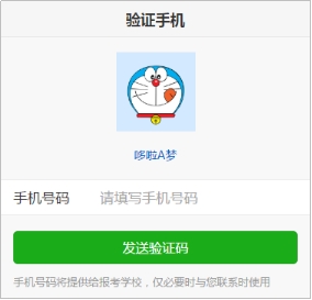 为便于联系考生,缴费前需验证考生联系电话的有效性。系统向考生手机发送随机验证码短信,考生收到验证码短信后,填写收到的验证码完成验证。