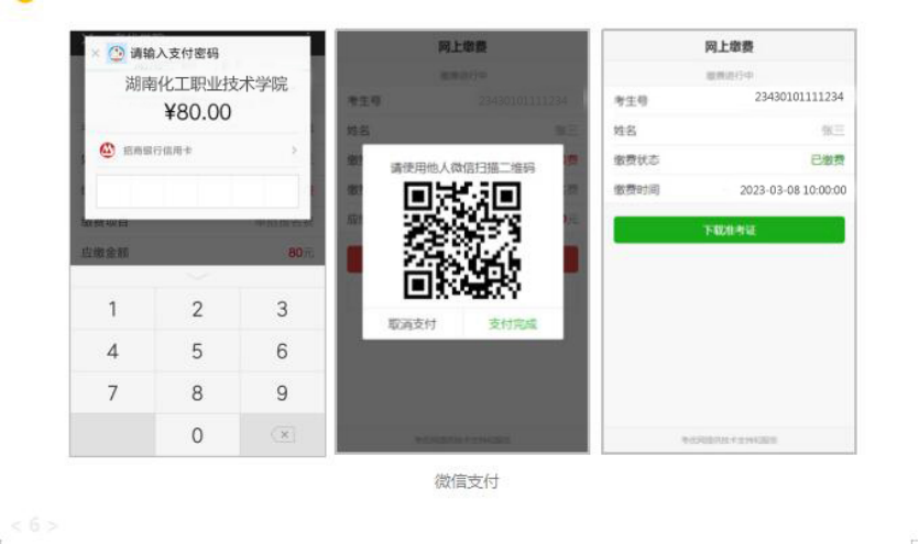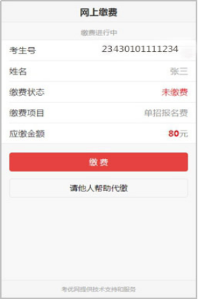 网上缴费提供两种方式,一种方式是使用自己的微信号进行支付,另一种方式可请他人帮助代缴。