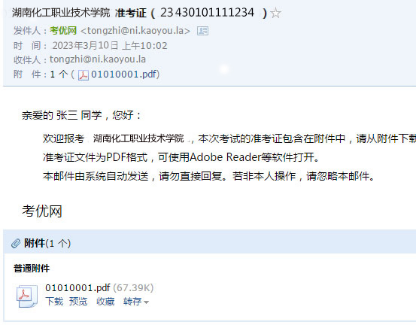 准考证文件为PDF格式,可使用Adobe Reader等软件打开。
