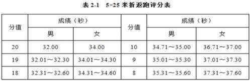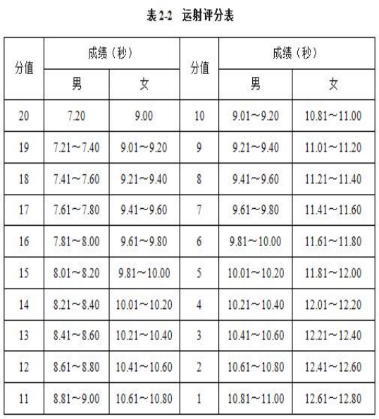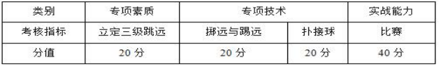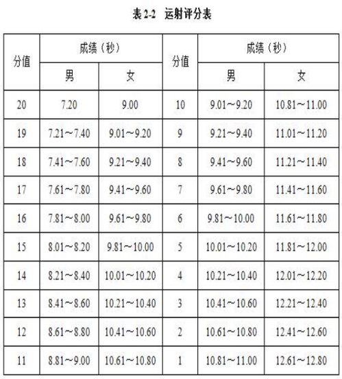 体育特长生测试项目及评分标准