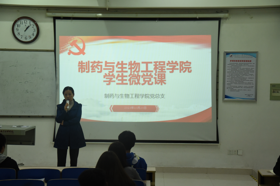 在深入学习贯彻习近平新时代中国特色社会主义思想的背景下,为了进一步加强学生干部思想教育工作,充分实现党建带团建的稳步发展,制药与生物工程学院于2023年10月20日中午12:00,在厚德楼楼115举行了一堂以《大学生廉政教育》为主题的党课。本次党课由制药与生物工程学院党总支书记陶飞主讲,学院党总支副书记肖威、全体辅导员老师及学院团学干部全程参与。