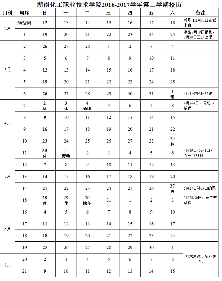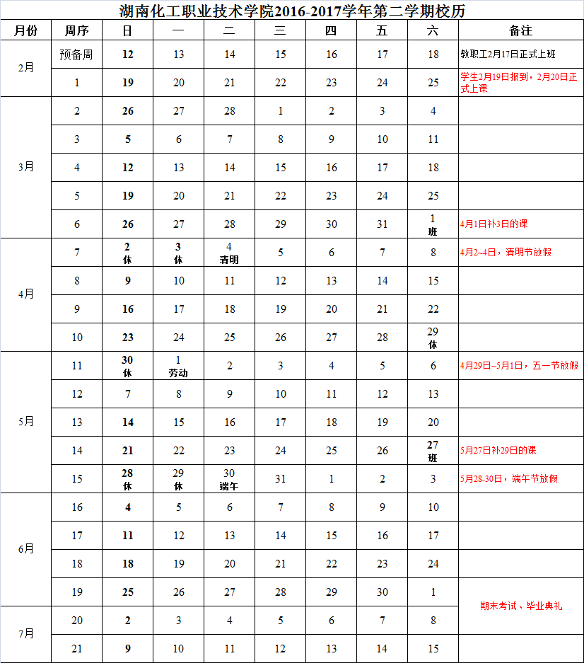 2016-2017学年第二学期教学进程(2月17日)