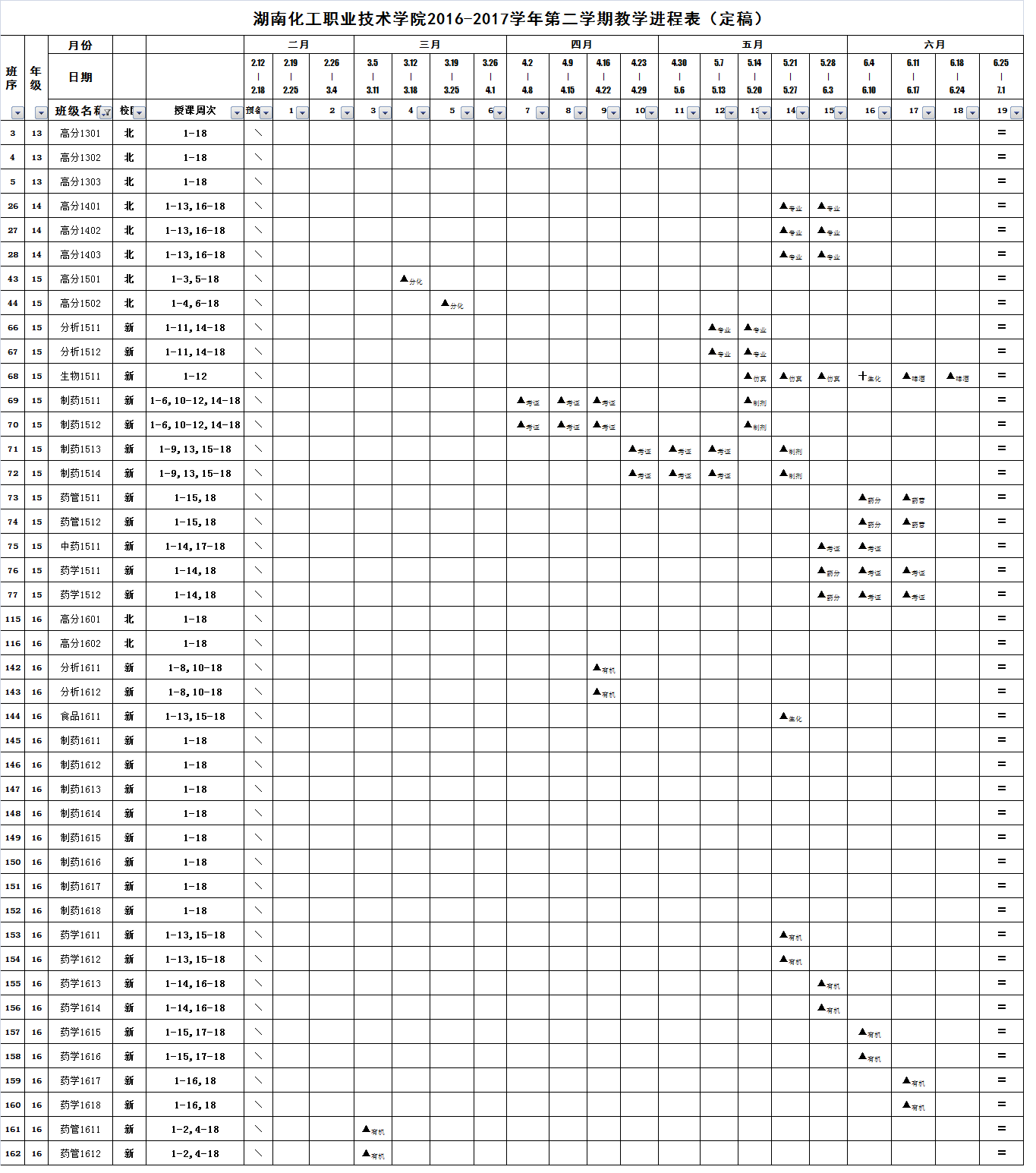 2016-2017学年第二学期教学进程(定)
