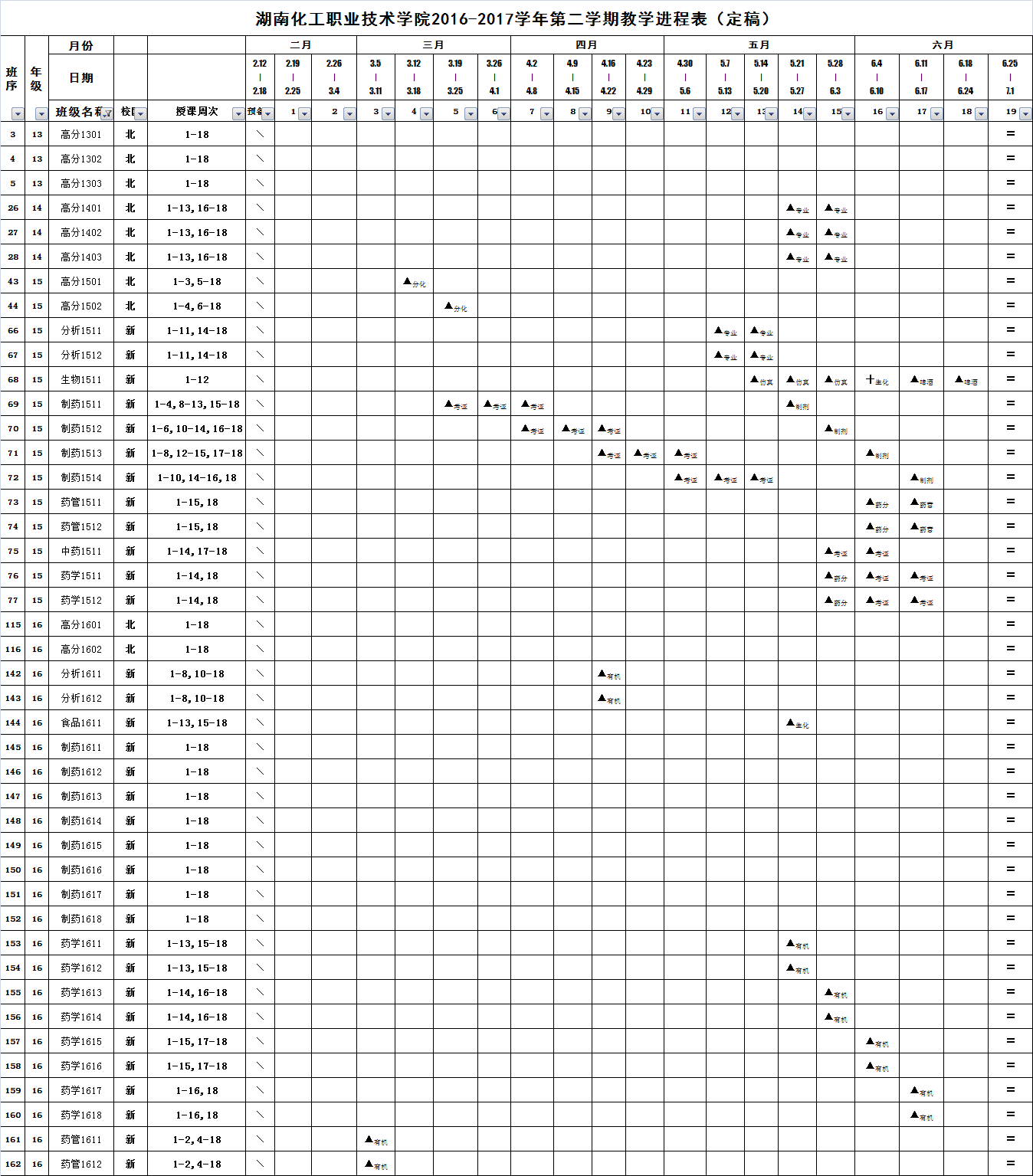 2016-2017学年第二学期教学进程(2.19)定