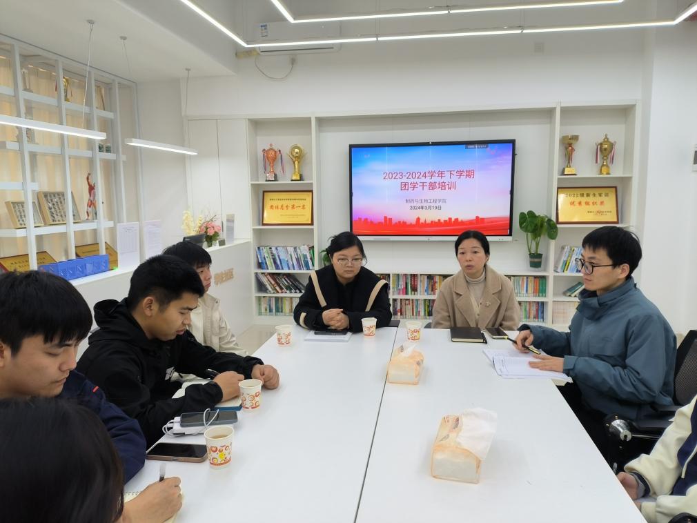 为更高效地开展新学期工作,引导团学干部明确工作重点和方向,提高工作能力和服务水平,确保本学期各项活动的顺利进行,制药与生物工程学院团学于2024年3月19日在学生宿舍四栋一站式社区组织召开新学期团学干部工作会议。制药与生物工程学院党总支书记陶飞、党总支副书记肖威、辅导员老师及全体学生干部出席本次会议。