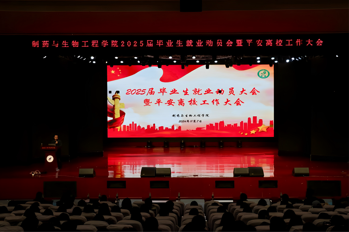 为增强2025届毕业生就业意识,明晰就业形势,明确就业方向、掌握就业技巧,为顺利步入职业生涯打下坚实基础。11月7日,制药与生物工程学院在大礼堂召开了2025届毕业生就业动员会暨平安离校工作大会。制药与生物工程学院副院长肖怀秋、党总支副书记肖威、毕业生辅导员及全体毕业生1000余人参加了大会,会议由肖威主持。