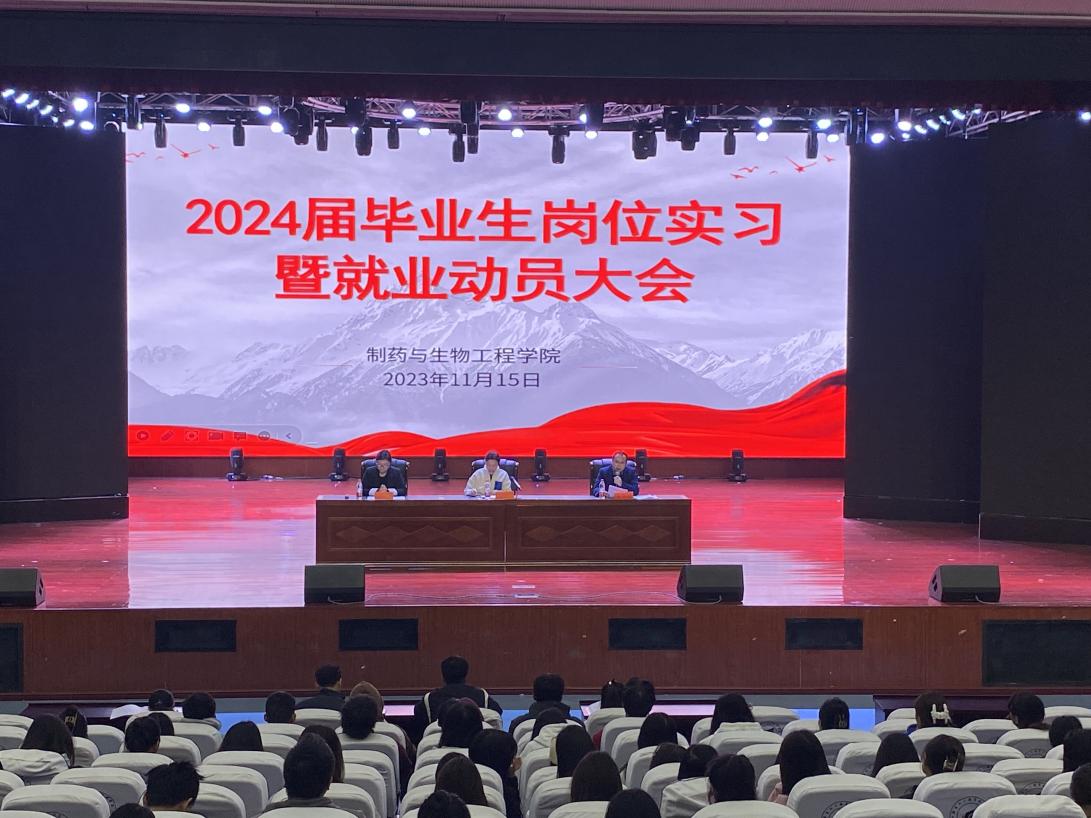 11月14日中午,制药与生物工程学院在校大礼堂举行2024届毕业生岗位实习暨就业动员大会。本次会议由学院党总支书记陶飞主持,学院副院长肖怀秋、学院党总支副书记肖威、2021级专兼职辅导员以及2021级全体学生全程参与。