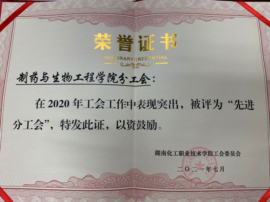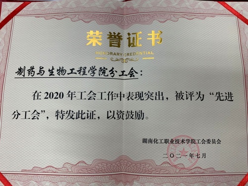 2020年,制药与生物工程学院分工会在学校党委的正确领导下,在学校行政的大力支持及学院全体会员的共同努力下,以习近平新时代中国特色社会主义思想为指导,认真贯彻党的十九届五中全会精神,紧紧围绕学校中心工作,切实履行“维护、建设、参与、教育”四项职能,勇于担当,积极作为,各项工作都取得了较好的成绩,获评为学?!?/span>2020年度先进分工会”,这也是我院继2018年以来再次荣获此项殊荣。