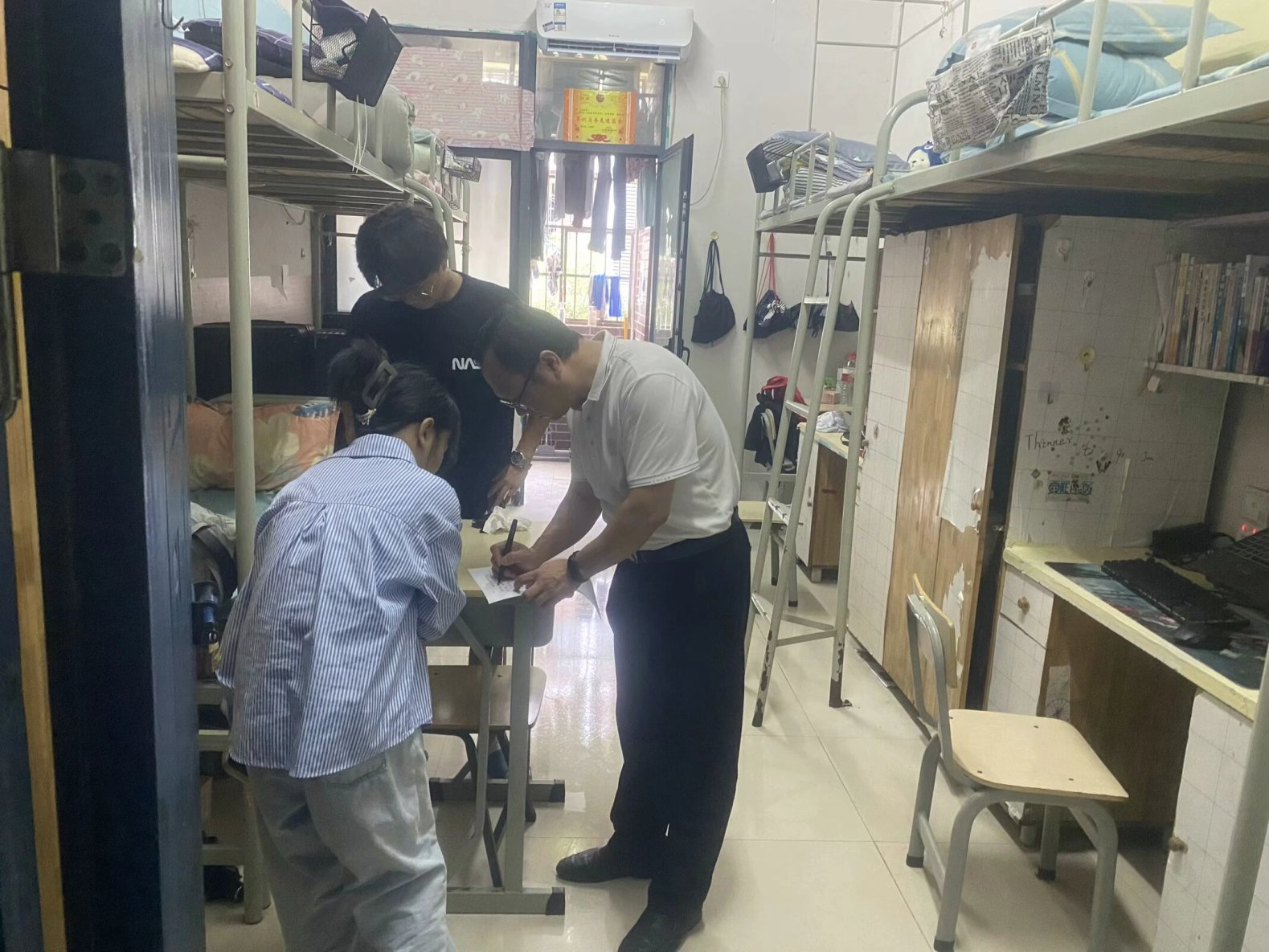 走访中,老师们对自己所负责的宿舍,进行了认真检查,对宿舍的安全隐患及环境卫生情况逐一把关。同时,围绕思想、学习、生活、纪律等方面,与同学们进行了深入交流。
