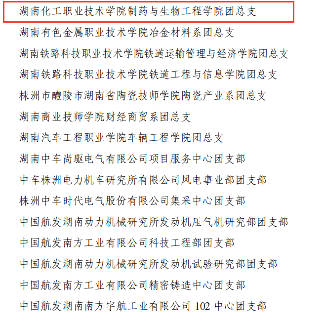 近日,共青团株洲市委员会发布表彰决定,湖南化工职业技术学院校团委荣获“株洲市五四红旗团委”荣誉称号,同时,制药与生物工程学院团总支荣获“株洲市五四红旗团总支”荣誉称号。据悉,湖南化工职业技术学院制药与生物工程学院团总支是一支有战斗力的青年集体,该团总支下设有团支部83个,共青团员3130人,其中学生党员100人,团学干部39人。在校团委、院党总支的正确指导下,该团总支秉承“厚德、励志、笃学、精艺”的校训,践行“知恩、感恩、诚实、守信”的院训,不忘初心,砥砺前行。