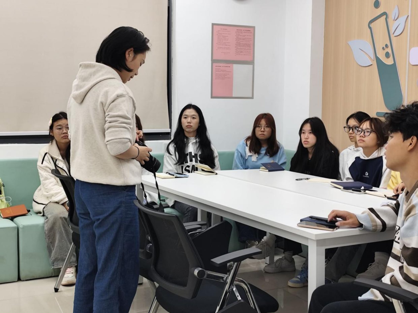 为进一步提升制药学院团学会干事的新闻写作及摄影能力,10月23日晚间,学院专职辅导员董伊锦在4栋一站式学生社区(尚美苑)成功举办了“杏林大讲坛”——《写作技能及摄影技巧培训》活动。