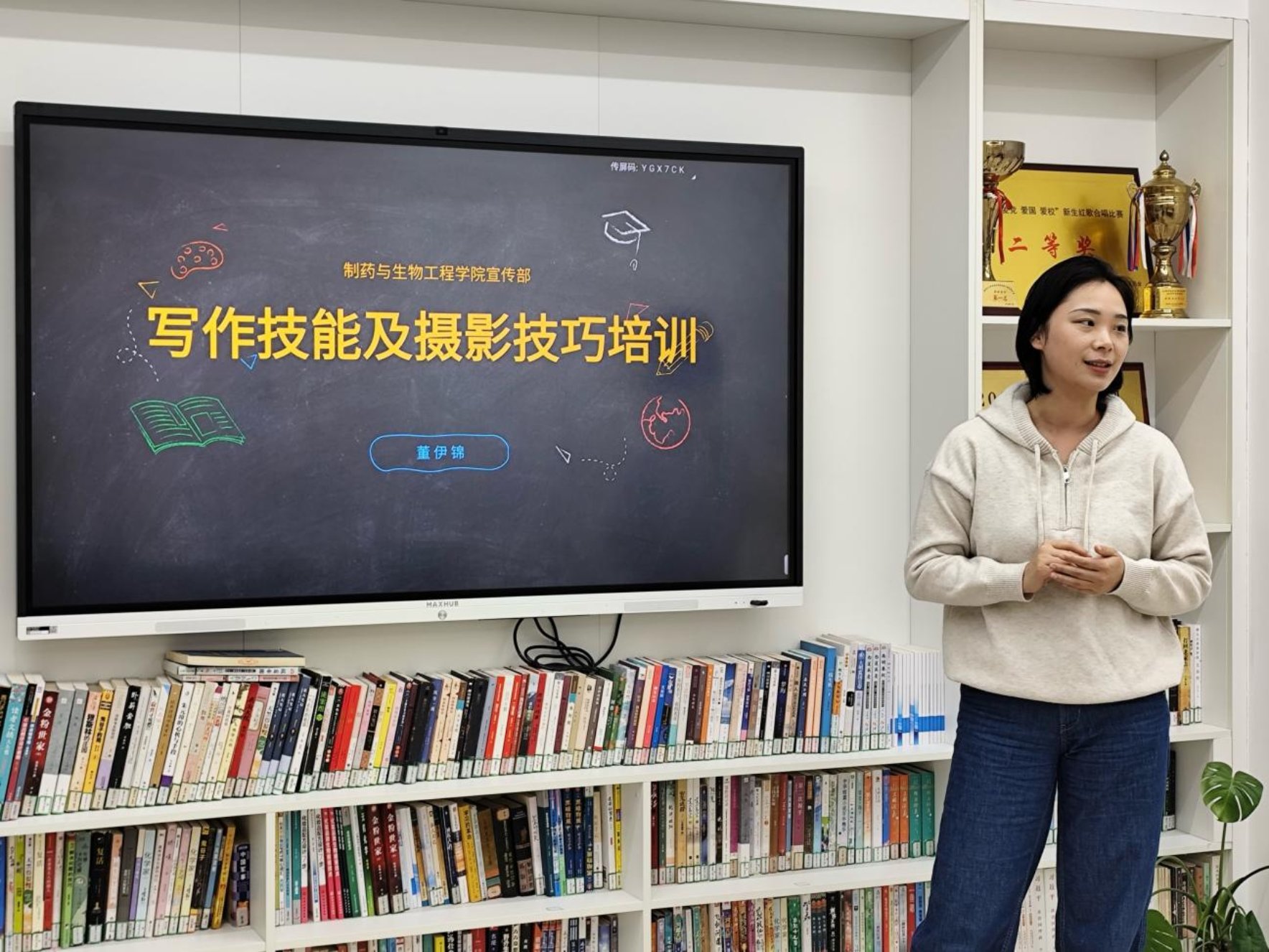 摄影是新闻报道中不可或缺的一部分,一张好的照片往往能够增强新闻的感染力和传播力。董伊锦为大家详细讲述了摄影的基本构图、光线运用以及后期处理等知识,展示学生以往拍摄活动照片,并针对性地提出了改进方法。