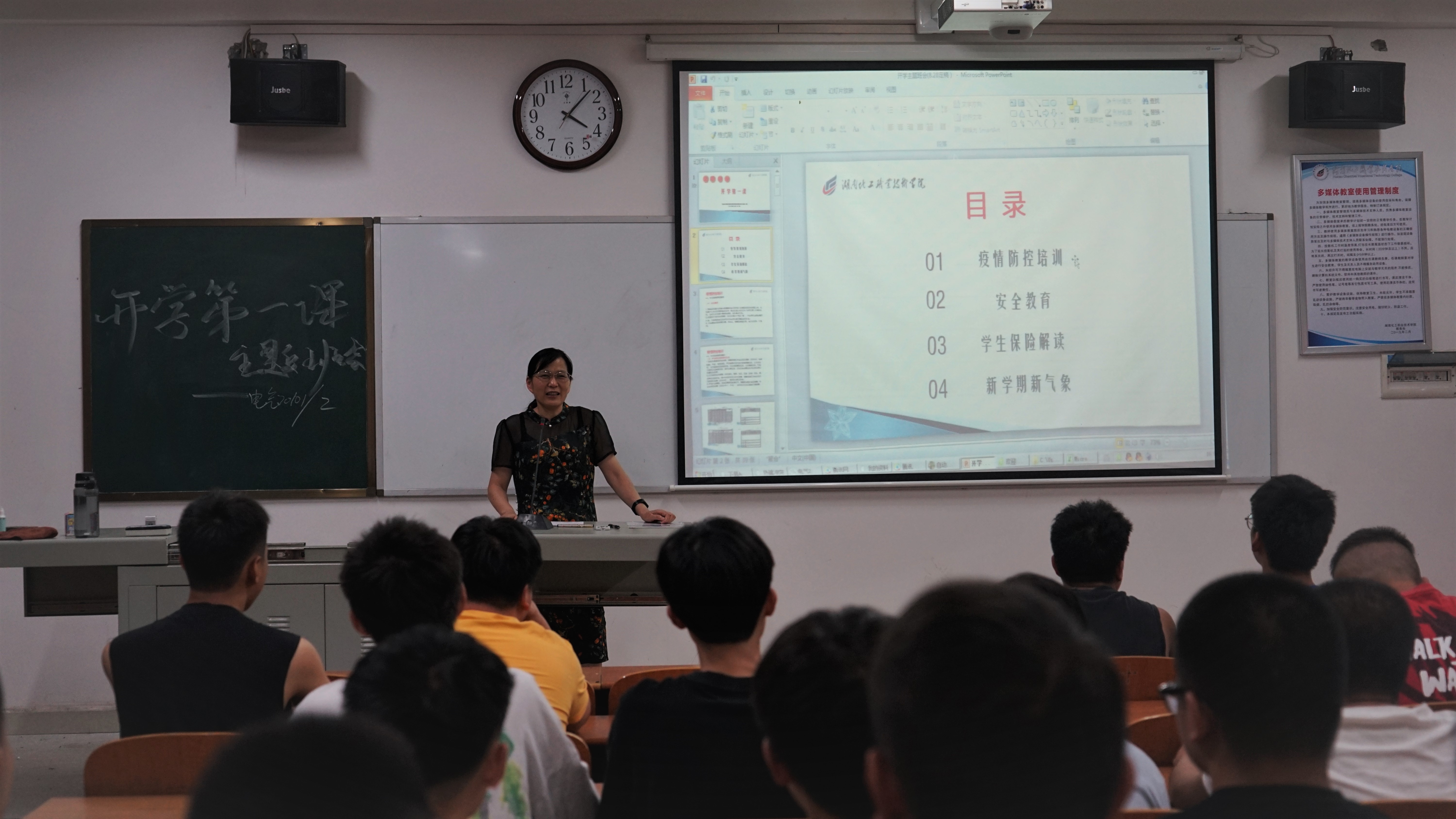 隆平作为电气20101-2班班导师参加开学第一个主题班会。在主题班会上,重点加强了疫情防控培训和安全教育,尤其对学生的安全防疫、心理健康教育、宿舍安全和日常出行的交通安全提出了具体意见。同时,隆平结合自己暑期大家访的经历,谈到了对走访的两名孤儿学生的印象,为他们的阳光心态感到高兴,也为他们积极进取、奋力向上的学习态度感到欣慰。她提到新学期开始,学校将继续进行精细化宿舍管理考核,并教导学生在宿舍生活要注意防火防盗,增强垃圾分类意识,并提到了开学的一些具体要求。