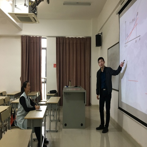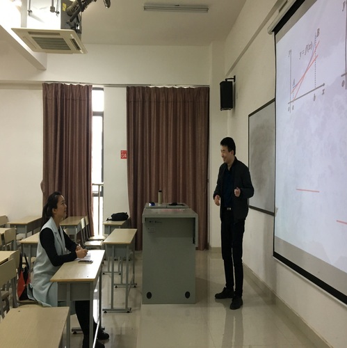 4月12日下午,公教楼的一间教室里,有一位特殊的“老师”和“学生”在上课。讲台上激情讲解的是李任充老师,台下认真听课,记录“听课笔记”的是他的“学生”——基础课部数体支部书记吕靖。