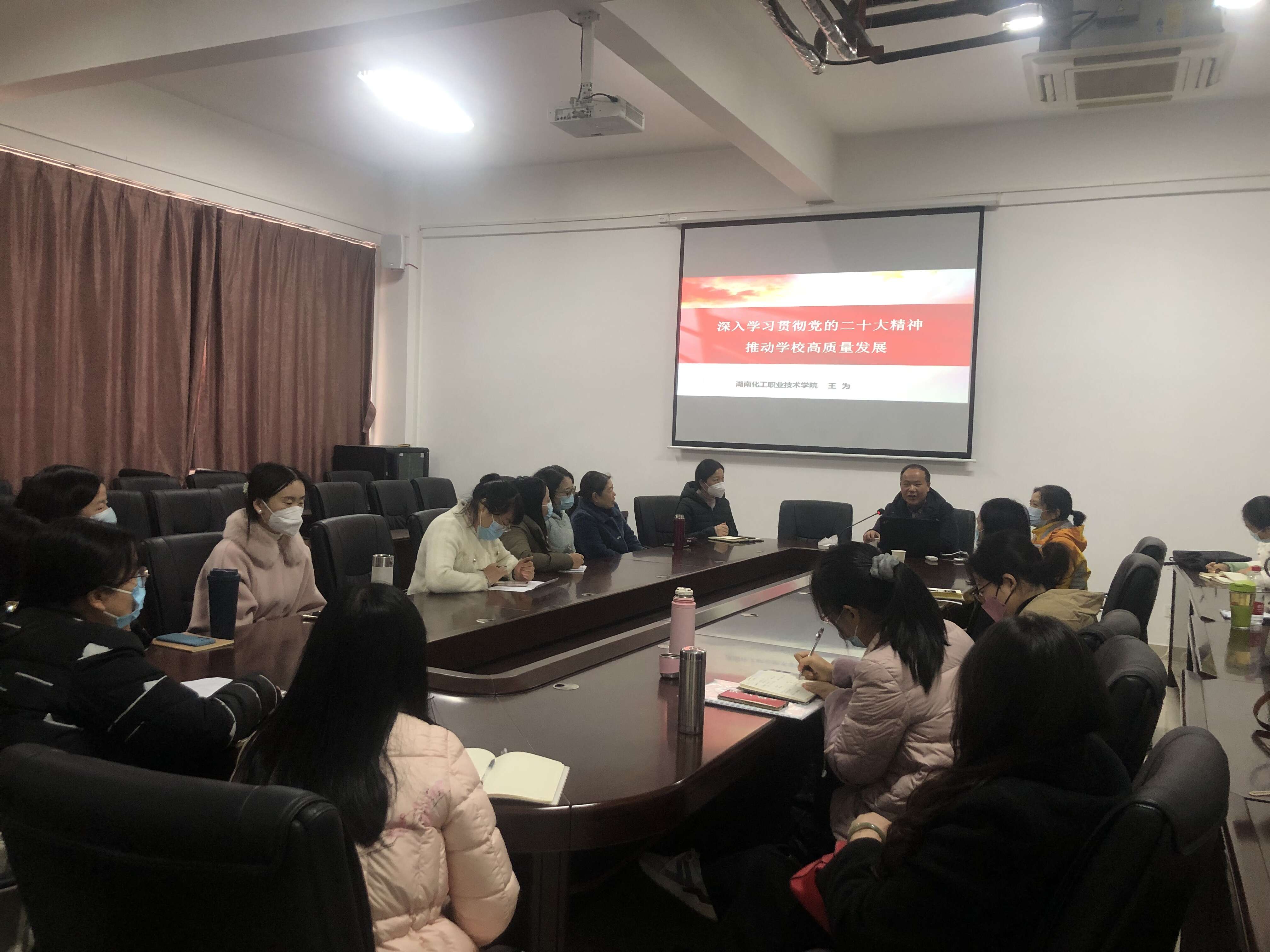 会上,王为以《深入学习贯彻党的二十大精神 推动学校高质量发展》为题,从“提高政治站位,深刻认识党的二十大的重大意义”“持续学深悟透,切实担当职业教育的责任与使命”“踔厉真抓实干,奋力推动党的二十大精神贯彻落实”三个方面,进行了全面系统阐释和深入解读。