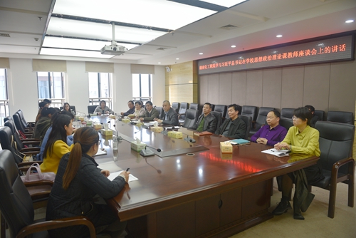 3月18日上午,习近平总书记在北京主持召开了学校思想政治理论课教师座谈会并发表重要讲话,总书记的讲话精神在湖南化工职业技术学院引起热烈反响。19日下午,学校在行政楼三楼会议室召开专题会议,学习习近平总书记在学校思想政治理论课教师座谈会上的重要讲话。校长王雄伟,党委副书记刘毅,纪委书记肖耀南,副校长易卫国、隆平、王为、童孟良、胡颖蔓,党委委员、组织部部长张麦秋,以及教育行政管理部分负责人和全体思政课教师参加会议。肖耀南主持座谈会。