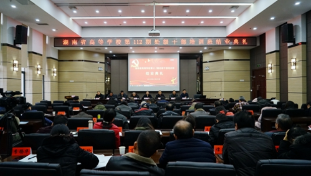 12月29日上午,湖南省高等学校第112期处级干部培训班结业典礼在学校行政楼一楼会议室举行。湖南省高校干部培训中心主任、书记,省委教育工委党校常务副校长刘国华,湖南省高等学校干部培训中心、省委教育工委党校教务部主任王青沅,学校党委书记刘望,校长王雄伟,党委副书记刘毅,副校长易卫国、王为、童孟良,全体中层干部、支部书记、组织员等党群部门人员出席了结业典礼,典礼由校长王雄伟主持。