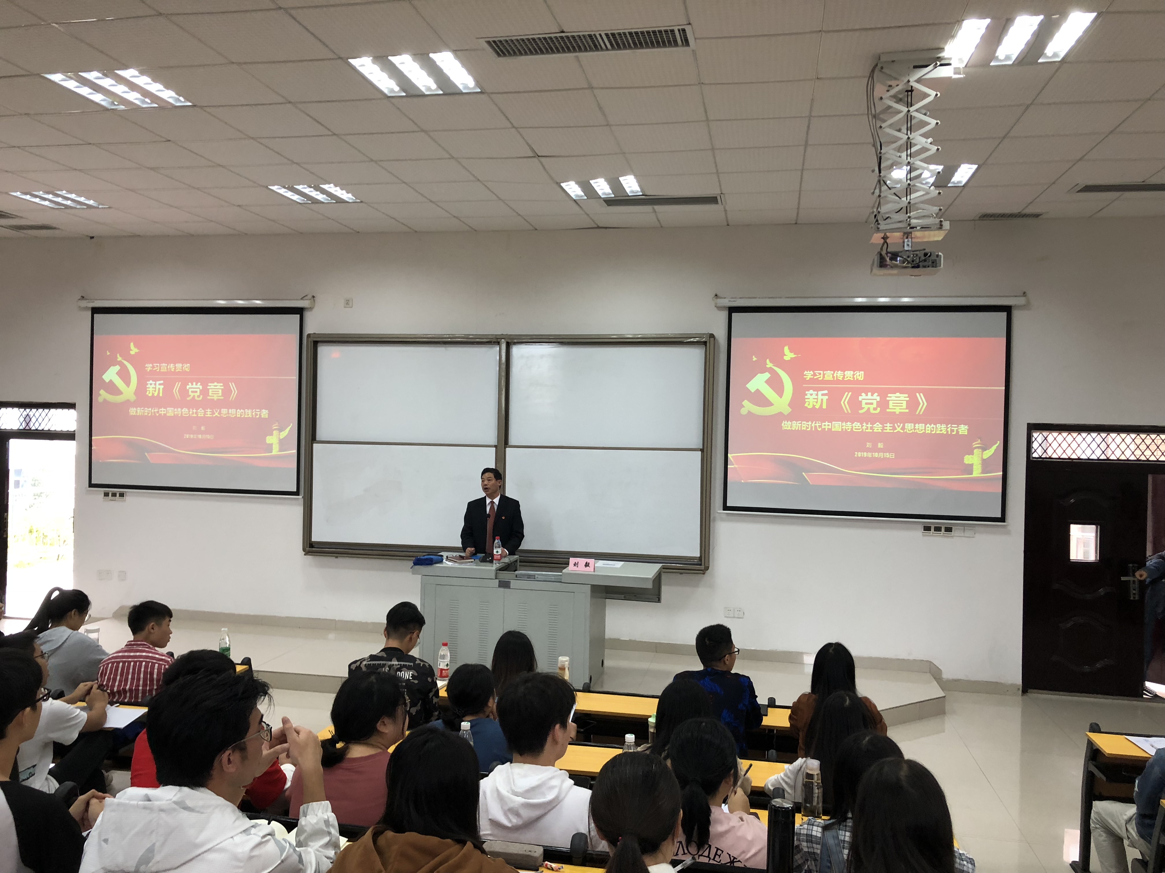 日下午学校党委副书记、党校校长刘毅教授以“新党章”为题,给