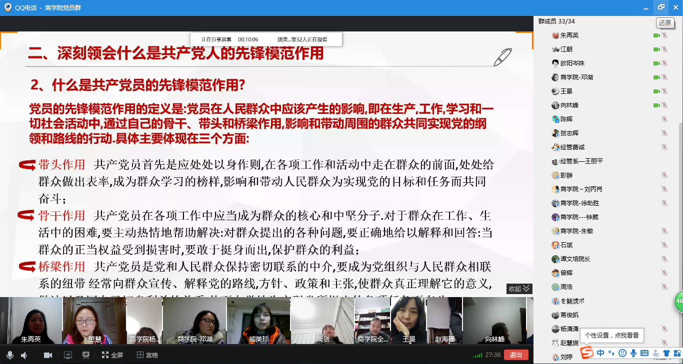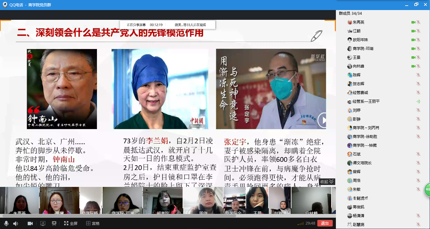 为扎实推进学校疫情防控工作,更好地发挥党员的先锋模范作用,2月26日晚,商学院党总支积极响应学校党委号召召开视频电话会议。本次会议由商学院党总支书记全国林主持,商学院全体党员参加。副校长童孟良教授以《发挥党员先锋模范作用,让党旗在战“疫”中高高飘扬》为题给全体党员上了一堂深动的党课。