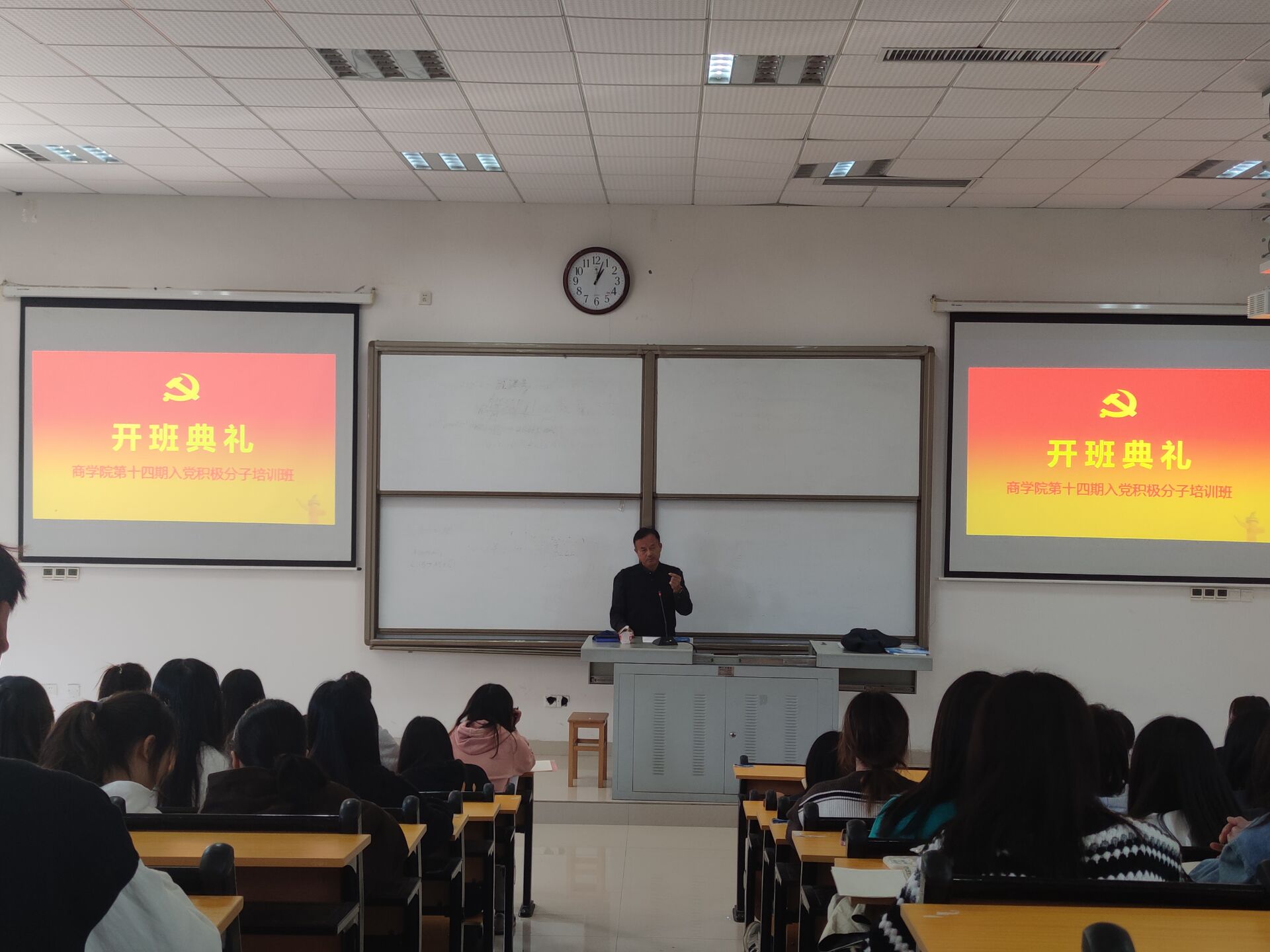 为确保党员发展质量,加强对入党积极分子的培养、教育,提高入党积极分子学习党的基本理论和贯彻党的路线方针政策的自觉性,商学院分党校于10月11日在励志楼222教室举行第十四期入党积极分子培训班开班典礼。商学院党总支书记全国林出席开班典礼??嗟淅裼裳г鹤橹焙┗壑鞒帧?/p>
