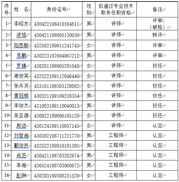 附:湖南化工职业技术学院2020年中级专业技术职务评审(认定)通过人员名单