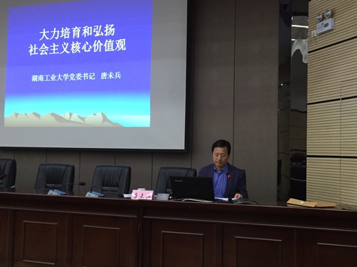 115日下午湖南工业大学党委书记唐未兵教授应邀来校作《大力培育和弘扬